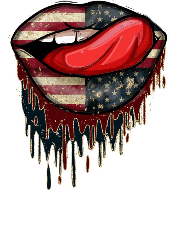 American Patriotic Dripping Lips V Neck T Shirt