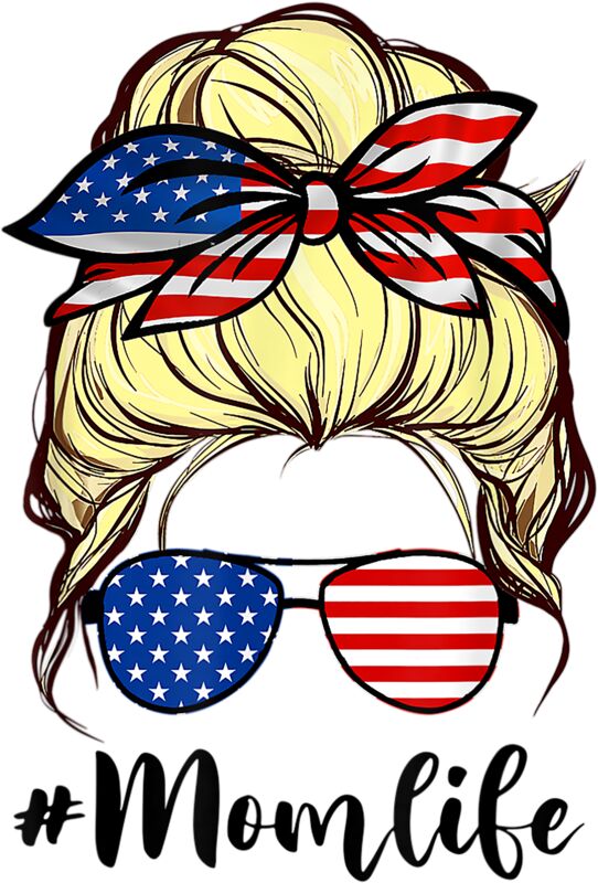 Messy Hair Woman Bun American Mom Life 4th Of July Blond T Shirt