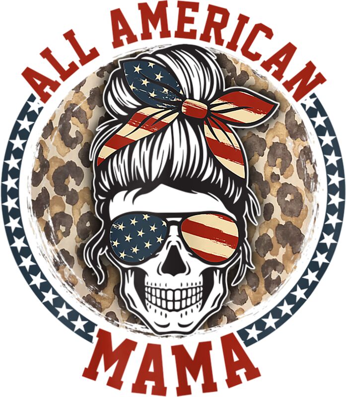 Womens wDr All American Mama Leopard Messy Bun Mom 4th Of July T Shirt